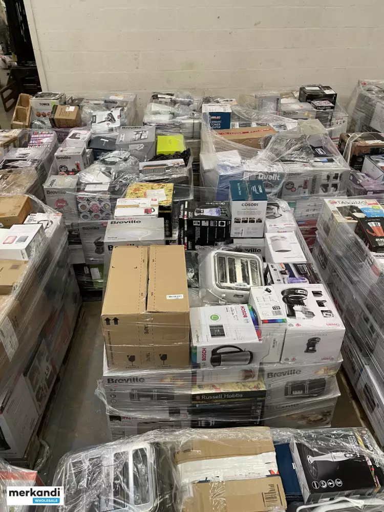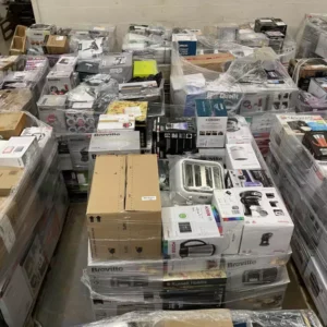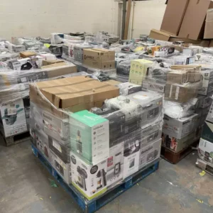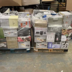 Pallets include: electrical customer returns goods such as kettles, irons, air fryers, deep fryers, heaters, blenders, microwaves, vacuums, toasters, etc. All raw returns, untested and unsorted.