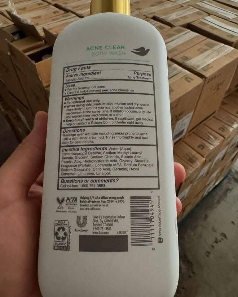 Dove Body Wash Acne Clear. Clears & helps prevent acne 1% clearing salicylic acid acne treatment 18.5 oz